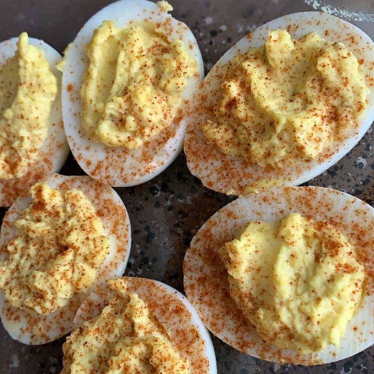 Spoon mixture back into egg whites and dust with paprika, if desired. Enjoy!